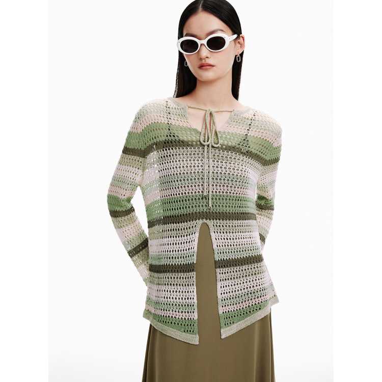 太平鸟 【渐变两件套连衣裙】太平鸟条纹领口系带吊带优雅两件套
