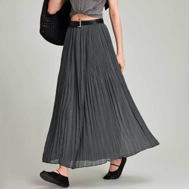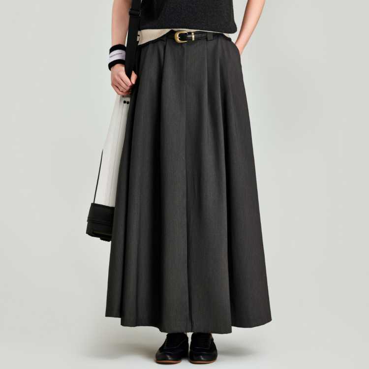 Havva 层次感缩褶遮胯显瘦长款半身裙气质赫本风女士裙子2025秋冬