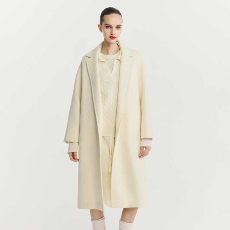 Havva 简约系好穿搭舒适绵羊毛保暖毛呢大衣中长款女士外套2025冬季