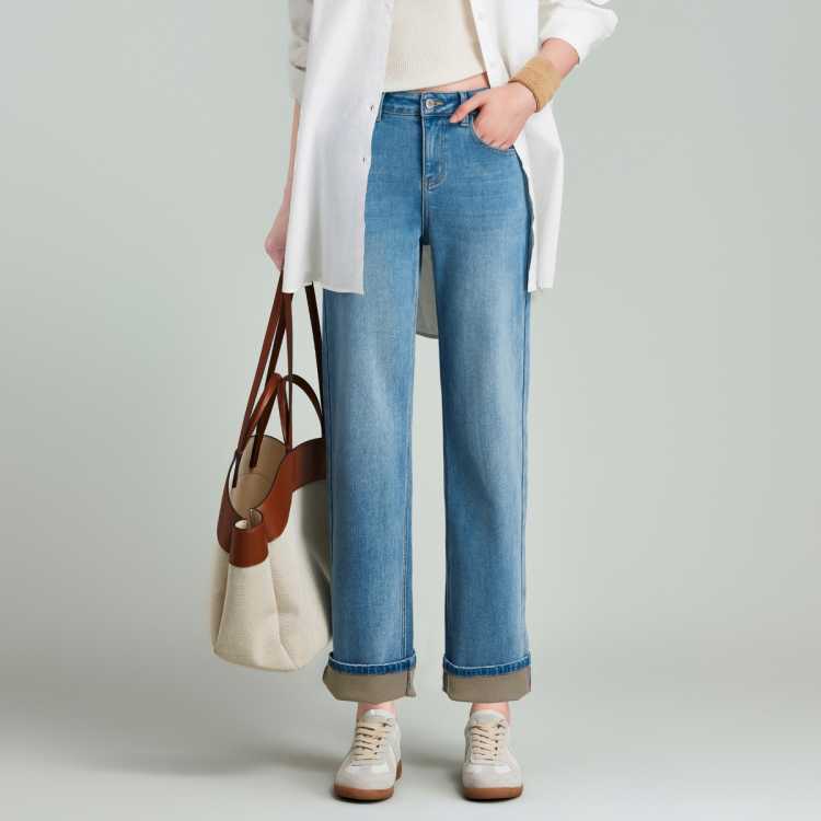 Havva 水洗磨白加绒加厚直筒牛仔裤舒适好穿显瘦女士裤子2025秋冬