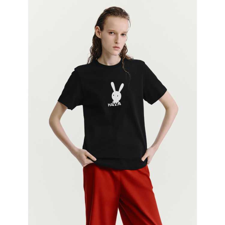 Havva 小众设计显瘦正肩圆领短袖T恤简约舒适好穿女士上衣2026春夏