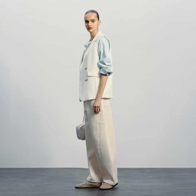 Havva 高级感叠穿无袖西装马夹外套宽松利落直筒女士上衣2026春季