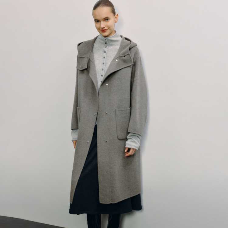 Havva 围裹式大廓形连帽100%绵羊毛大衣双面呢子外套2025秋冬
