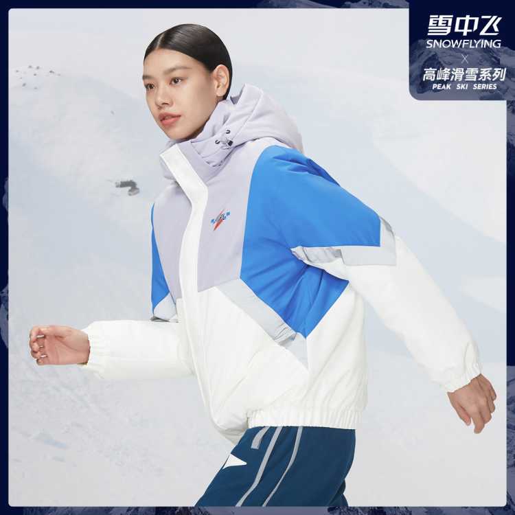雪中飞 【高峰滑雪】情侣短款防寒户外羽绒服潮流拼色保暖耐磨运动羽绒服