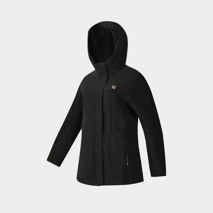 FILA 【防泼水】女装跑步健身运动上衣女士基础加绒保暖连帽梭织外套