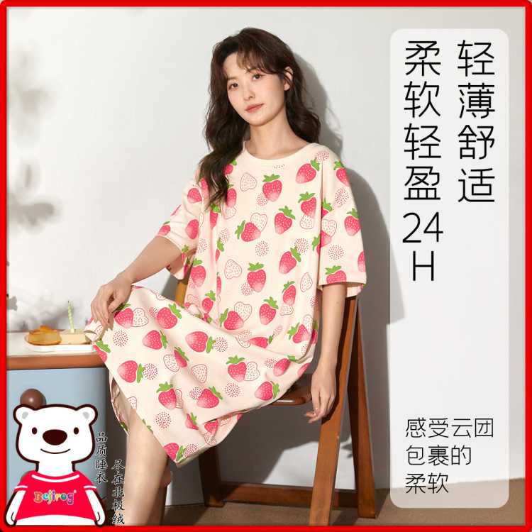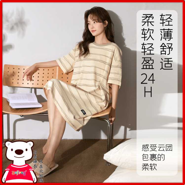 北极绒 【可外穿睡裙】明星同款女睡衣夏季薄款短袖套头显瘦高级感家居服