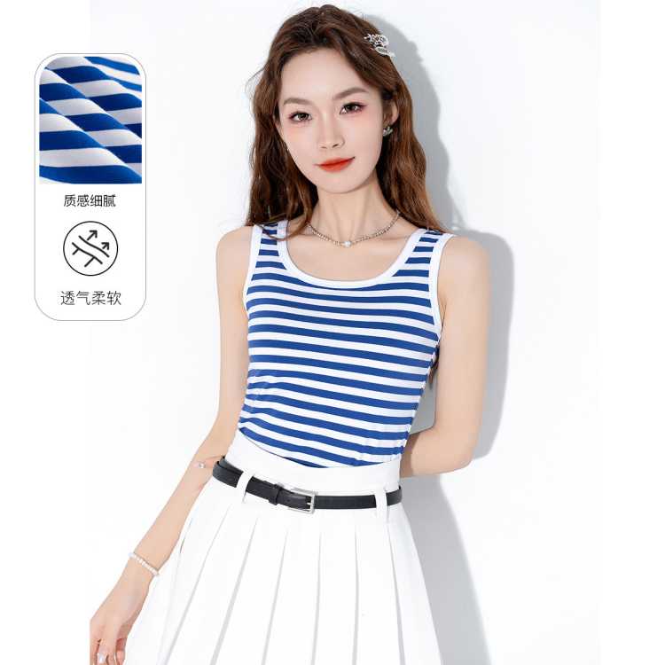 真维斯 条纹吊带背心女U领显瘦百搭休闲清新甜美少女运动风宽肩上衣女