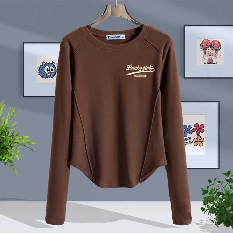 真维斯 Z+ 【修身显瘦】春季女款简约印花内搭打底衫仿德绒长袖T恤