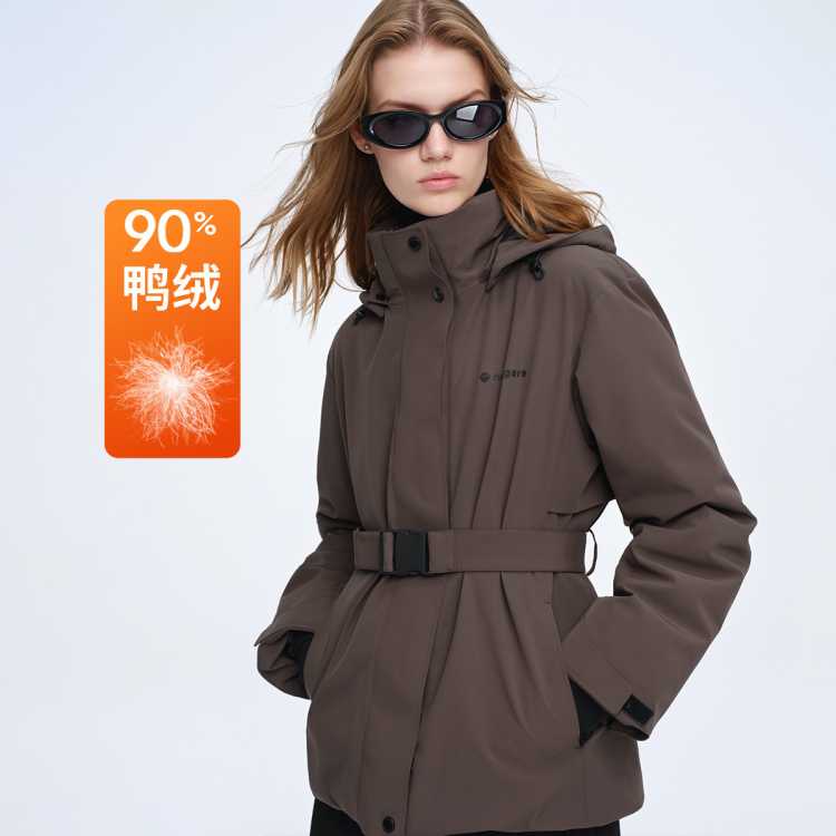 玖姿安娜蔻 三防发热优雅连帽短款收腰鹅绒羽绒服女2025冬季