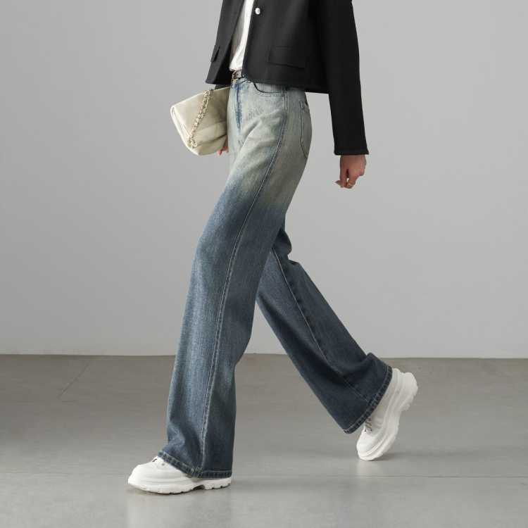 娅丽达 【渐变高腰窄版拖地阔腿裤女】宽松遮肉显瘦直筒牛仔裤春季畅销款