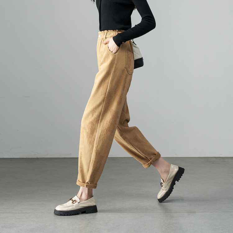 娅丽达 【高腰丝绒牛仔裤】通勤百搭显瘦九分牛仔哈伦裤女裤2026春款