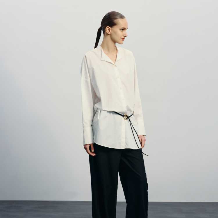 Havva 简约休闲长袖衬衫落肩宽松舒适好搭中长款女士上衣2026年春季