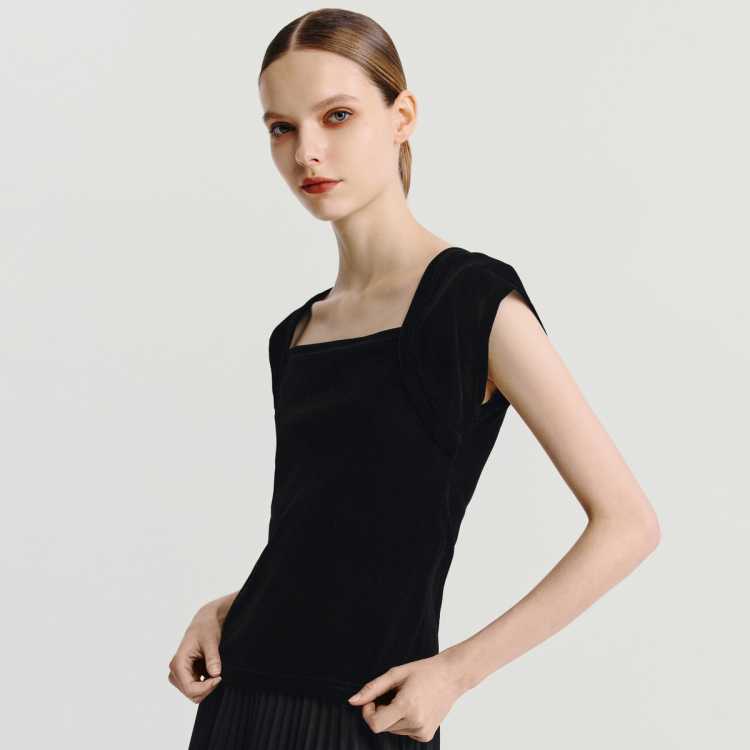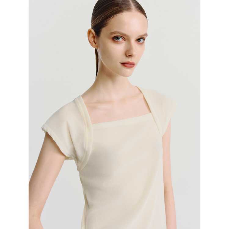 Havva 方领正肩短袖T恤紧身显瘦法式打底衫女士套头上衣2026年春夏