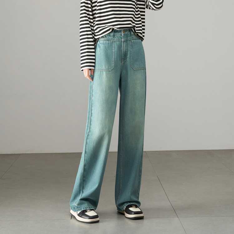 娅丽达 复古港风高腰牛仔直筒裤女宽松显瘦阔腿拖地裤女长裤2026春款