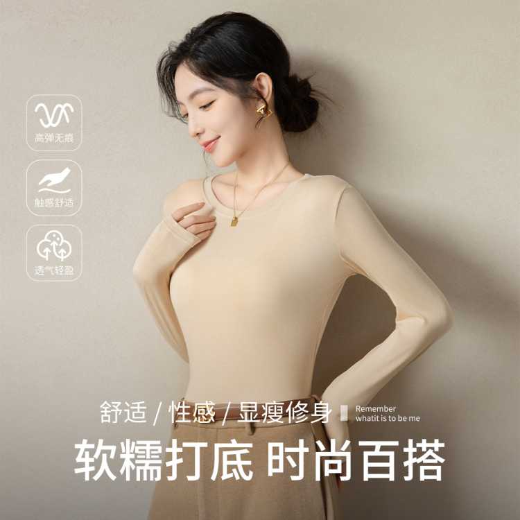 芬腾 【百搭外套】女士纯色圆领打底衫女休闲百搭舒适可外穿中领上衣女