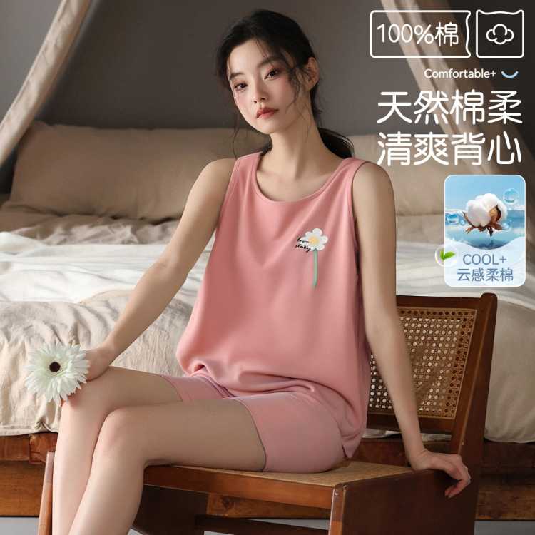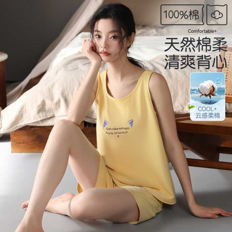 猫人 【100%纯棉】夏季女士睡衣家居服背心短裤柔软套装可外穿