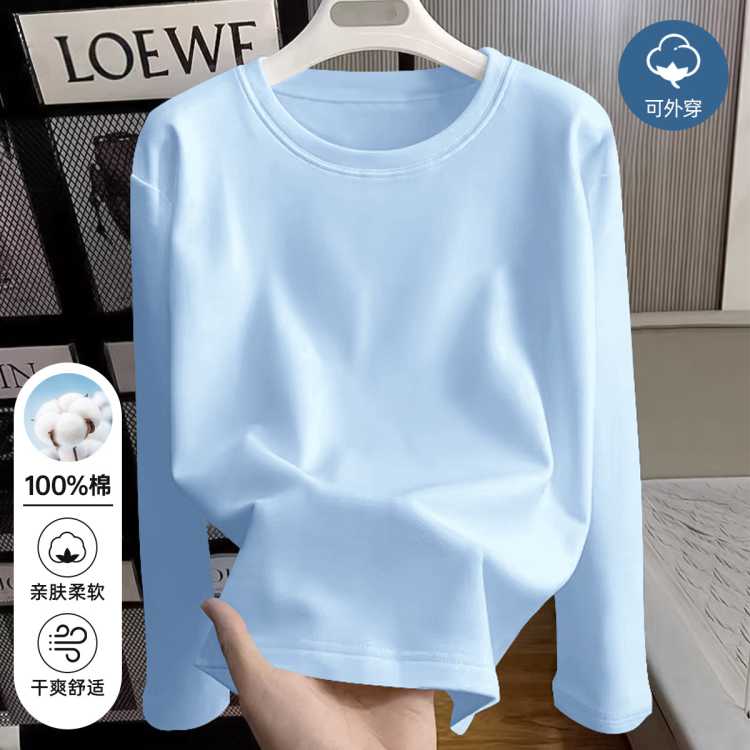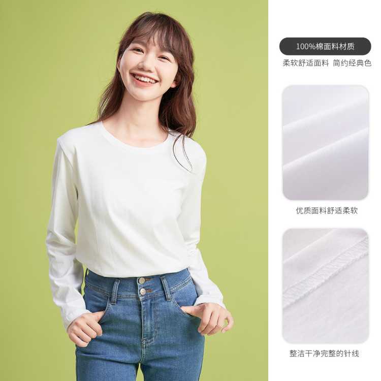 真维斯 打底衫女春秋季简约纯色内搭上衣圆领纯棉柔软长袖t恤百搭体恤