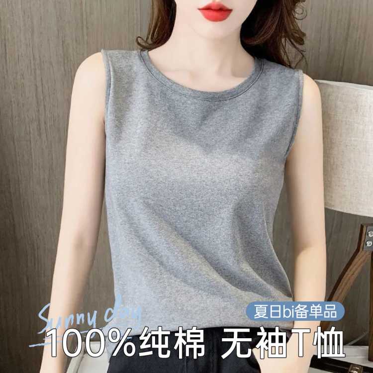 浪莎 【100%纯棉】夏季纯色女士打底T恤时尚百搭舒适透气薄款背心