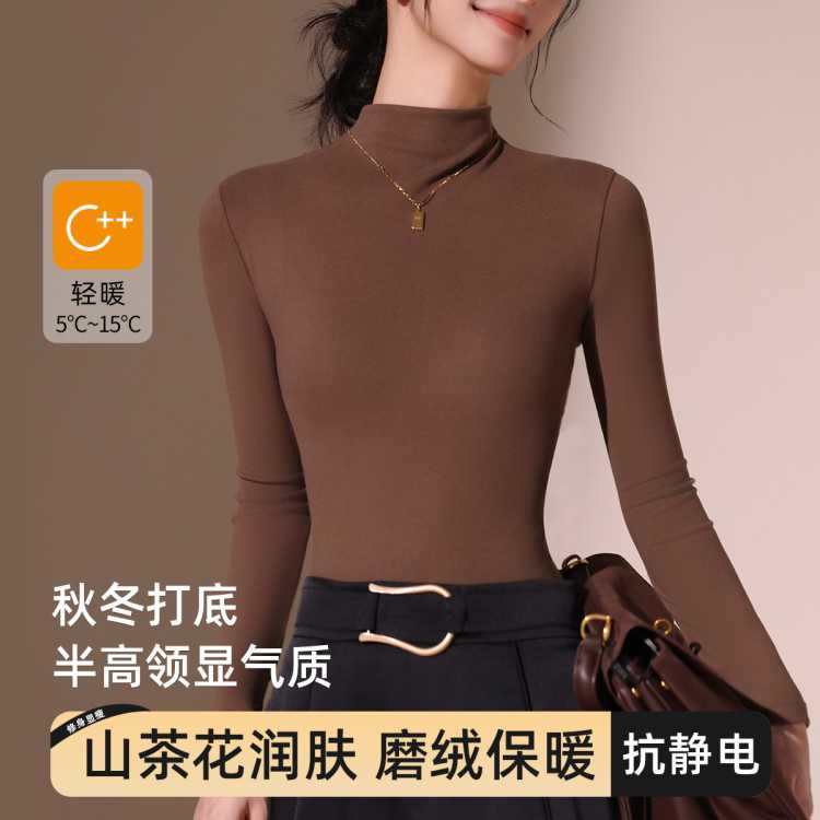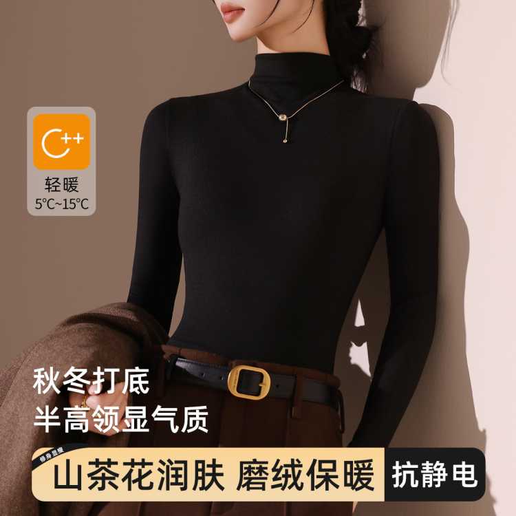 都市丽人 山茶花润肤 防静电半高领打底衫女内搭高级感可外穿小立领女上衣