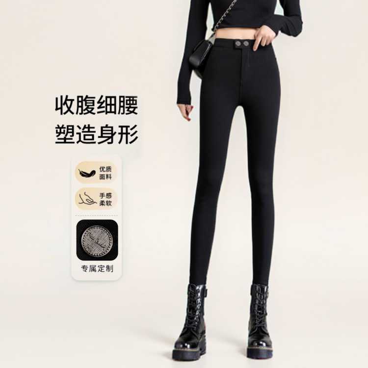 皮尔·卡丹 加绒小黑裤修身打底裤牛仔裤休闲时尚女装弹力收腹显瘦高腰魔术裤