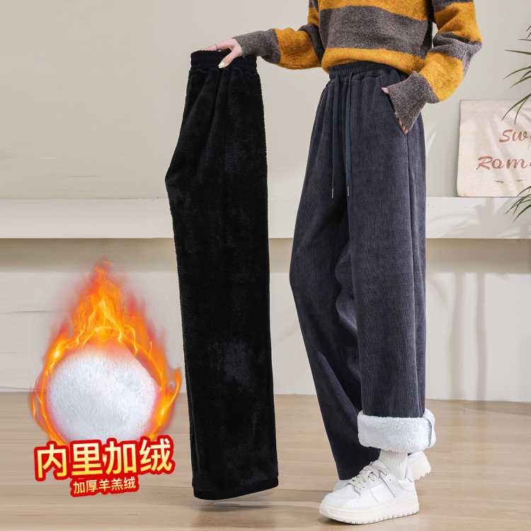 真维斯 加绒裤子女冬季加厚保暖宽松休闲高腰显瘦舒适百搭抗寒阔腿休闲裤