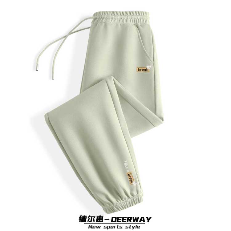 德尔惠 【女装】运动裤女秋季重磅针织女式卫裤印花休闲裤宽松系带裤子