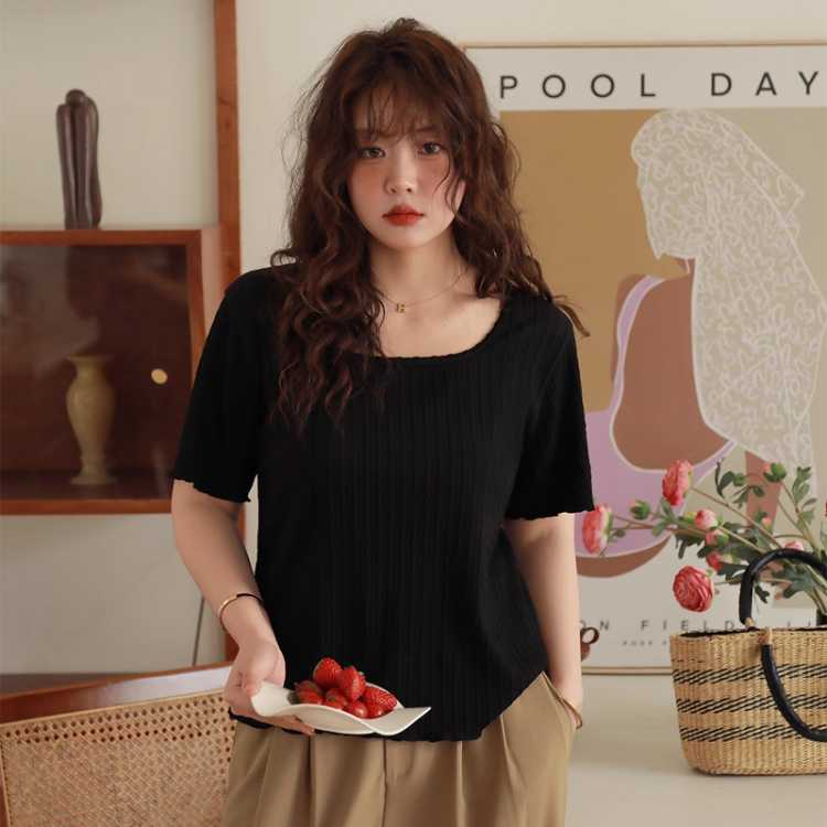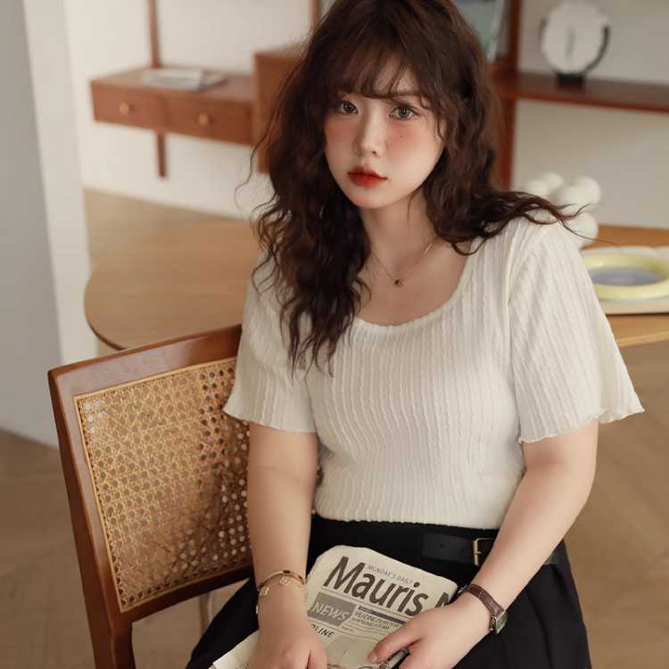 XLIDM 小俪大码女装 肌理感斜针提花糯米薄款胖mm夏季短袖T恤