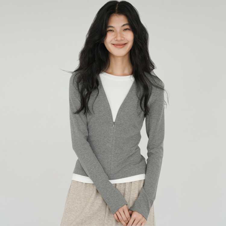 GLORY SEED 拼色设计感假两件拉链圆领T恤女2025秋慵懒风氛围感长袖上衣