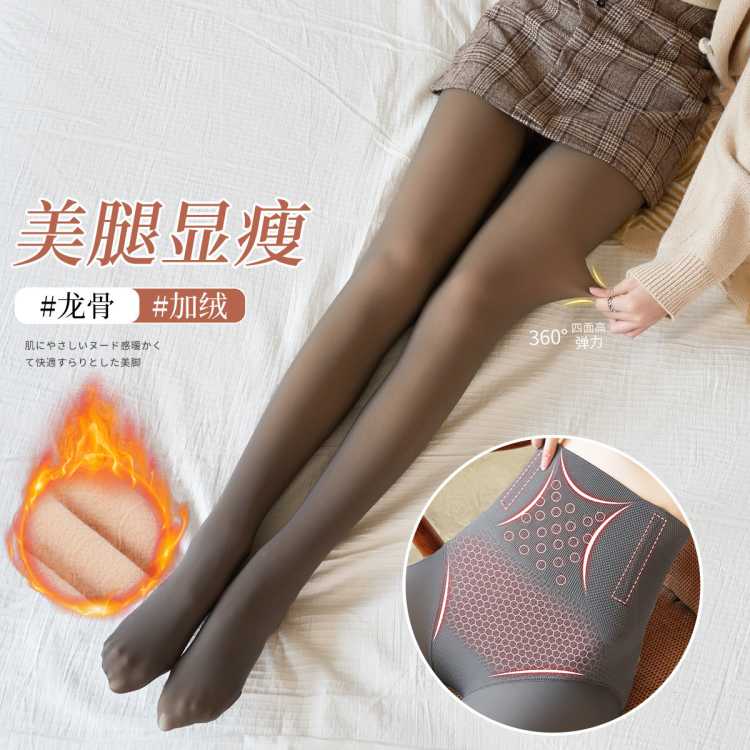浪莎 【透肤光腿神器300gsm加绒】高腰龙骨收腹打底裤子显瘦裤袜