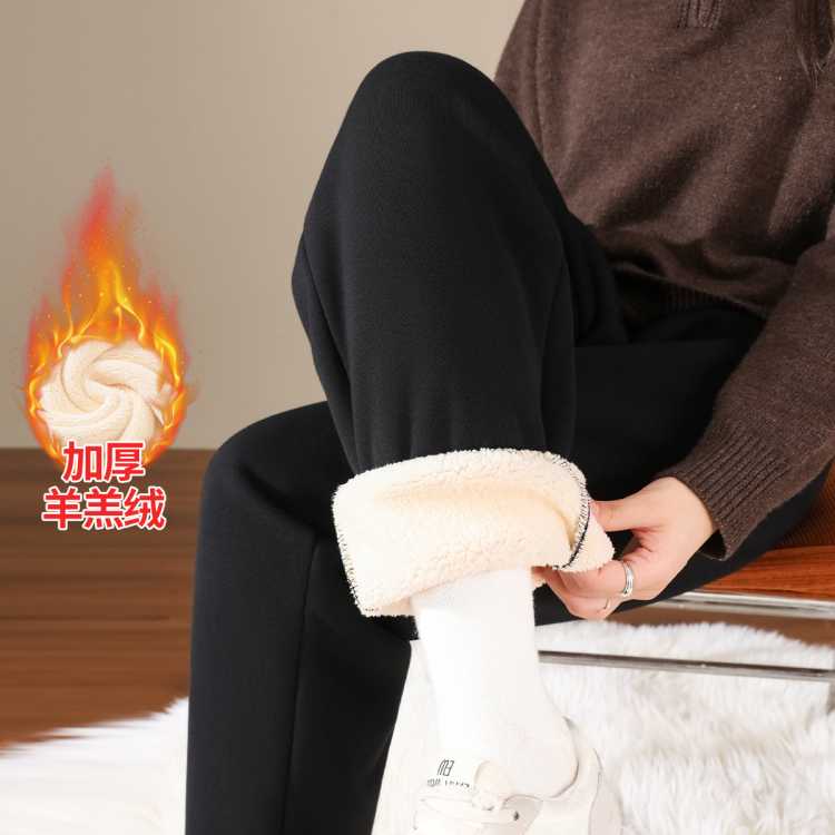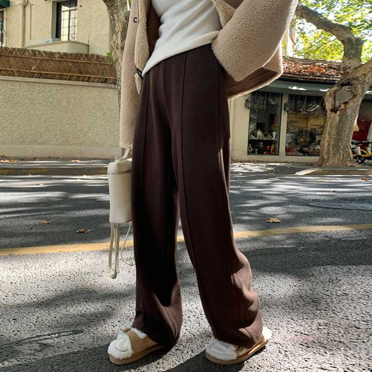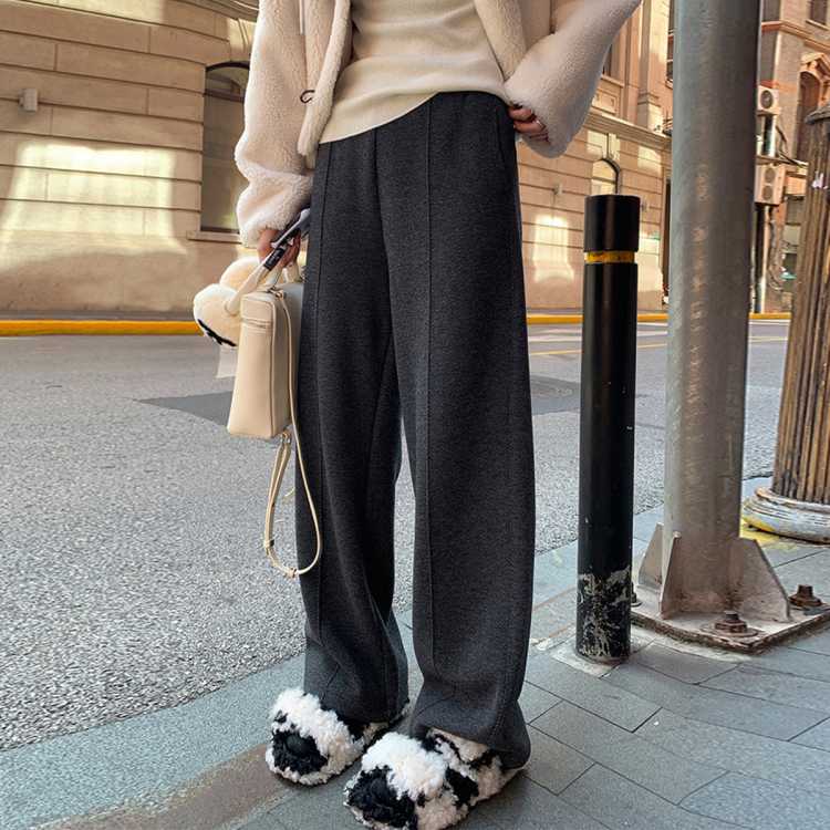 班尼路 【加绒加厚】冬季保暖休闲裤女高腰提臀线设计垂顺显瘦窄版阔腿裤