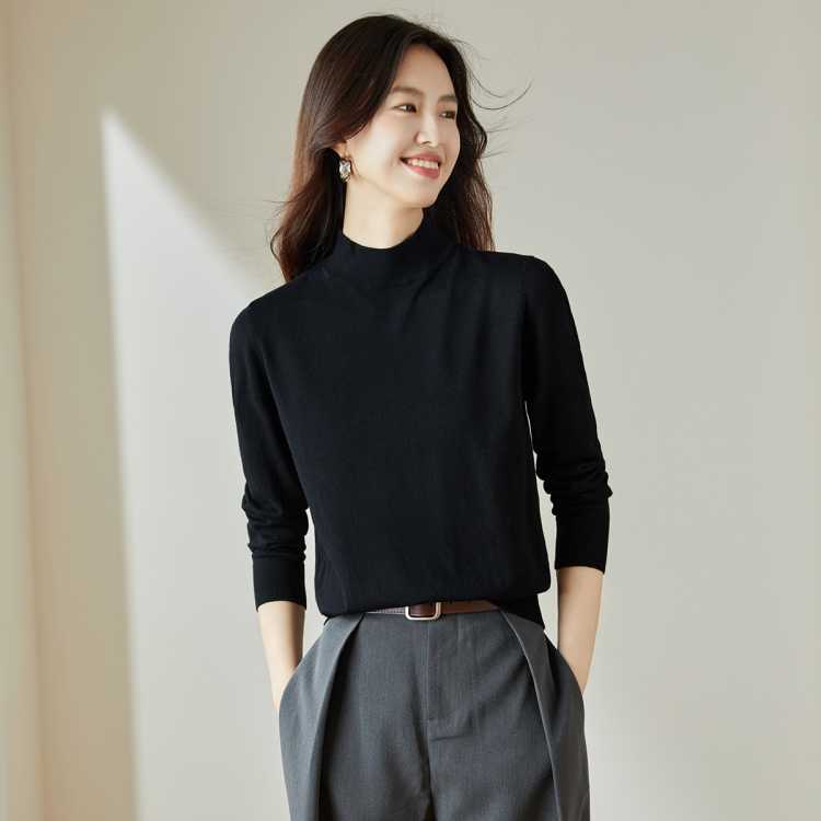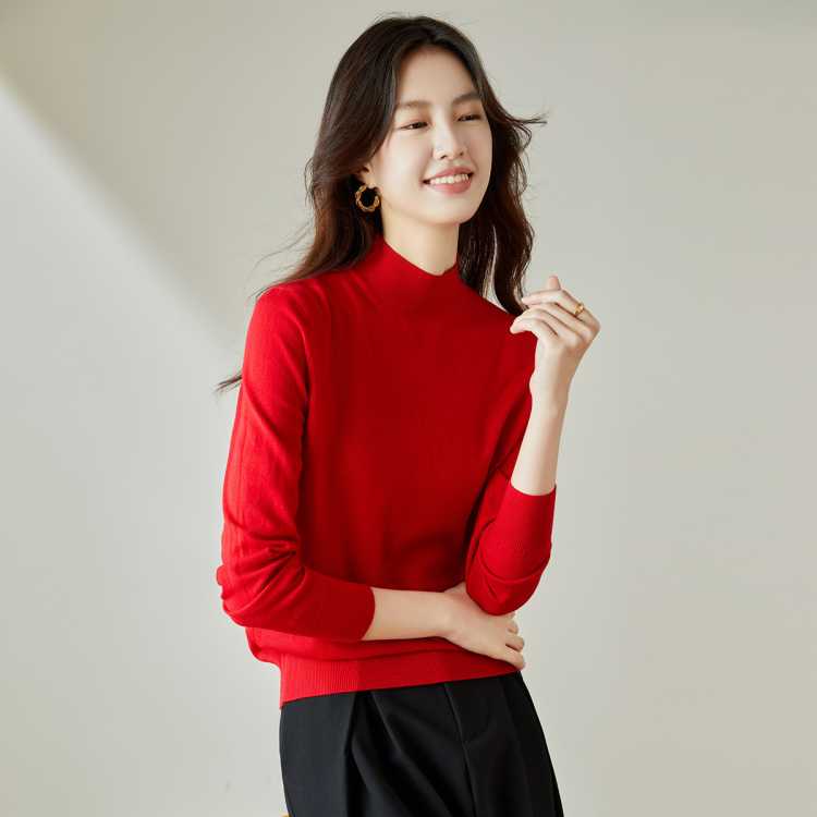 卡邦尼 半高领内搭针织打底衫女款秋冬套头毛衣春秋季长袖休闲百搭上衣