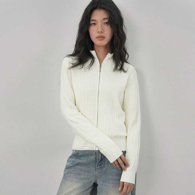 GLORY SEED 法式复古半高领双拉链毛衣开衫外套女2025秋冬外穿高级感上衣