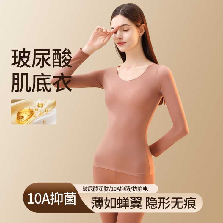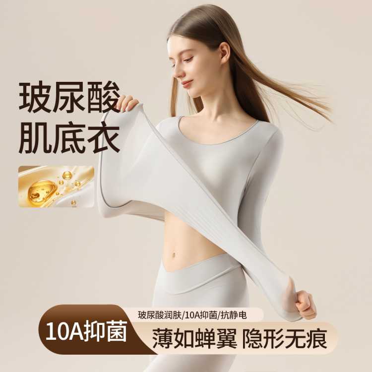 猫人 【超薄玻尿酸肌底衣】女士秋衣秋裤套装高弹无痕保暖内衣套装女